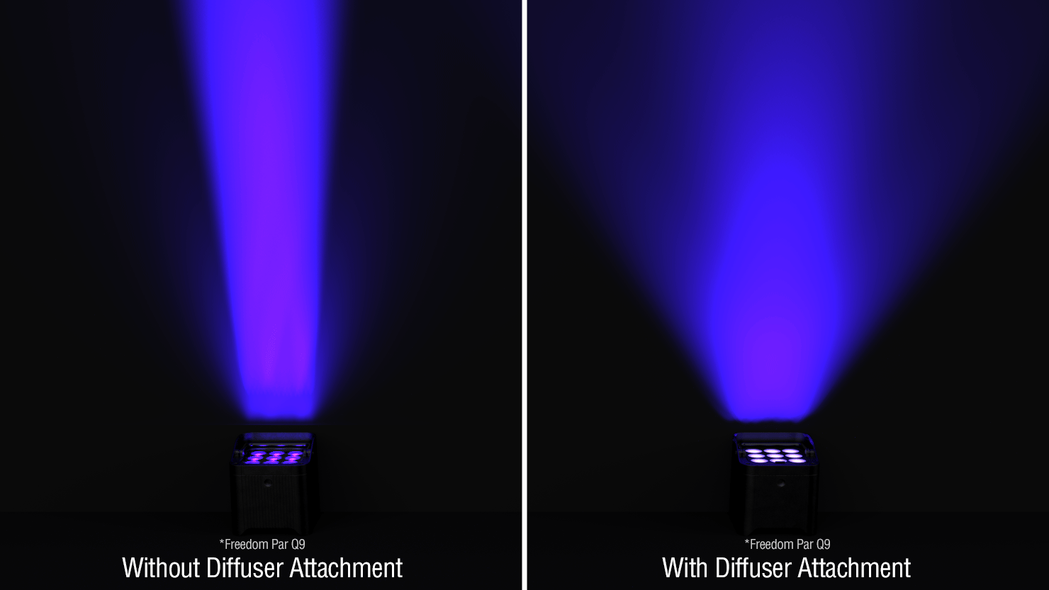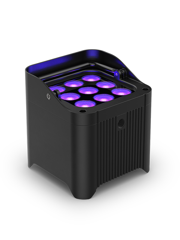 The freedom to take 100% TRUE wireless, battery-operated, hex-color lighting outdoors just got better! The hallmark built-in D-Fi transceiver for wireless DMX control isn’t the only thing inside the hex-colored (RGBAW+UV) Freedom Par H9 IP. This light also has a built-in RF receiver for wireless control using the RFC or RFC-XL optional remotes. The light’s IP rating and robust housing repels mother nature for temporary outdoor situations to give you Freedom lighting power rain or shine. A more compact form factor and new secondary optics to provide perfect color blending with nearly no artifacts also propels this par. The OLED display allows for full-text to easily change the fixture’s settings and adjustable run times ensure the fixture will last the length of almost any event.