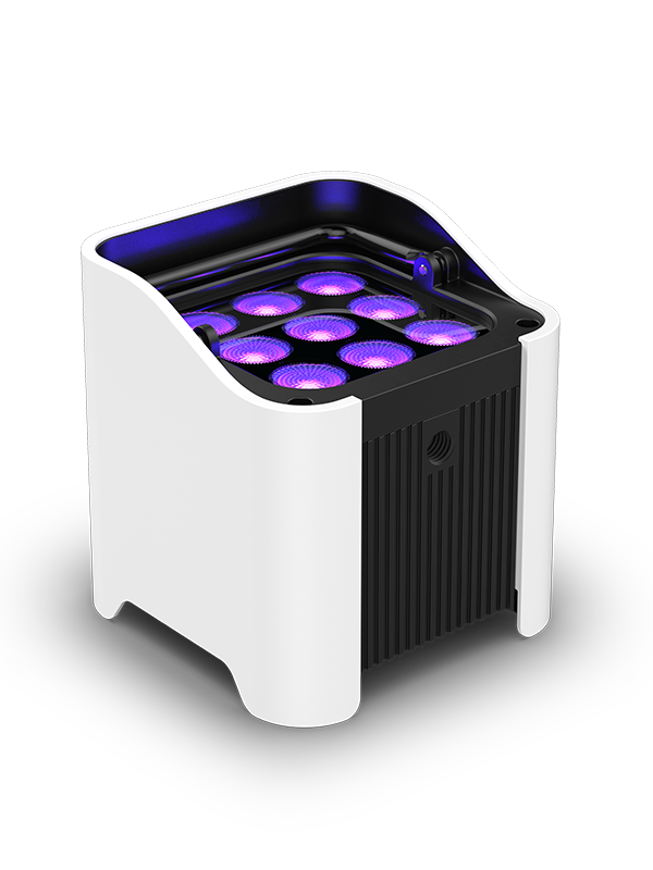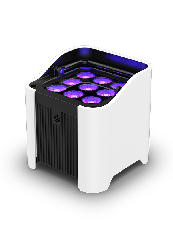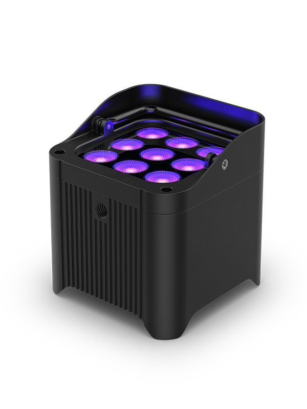 100% TRUE wireless, battery-operated, hex-color LED uplight with built-in D-Fi transceiver